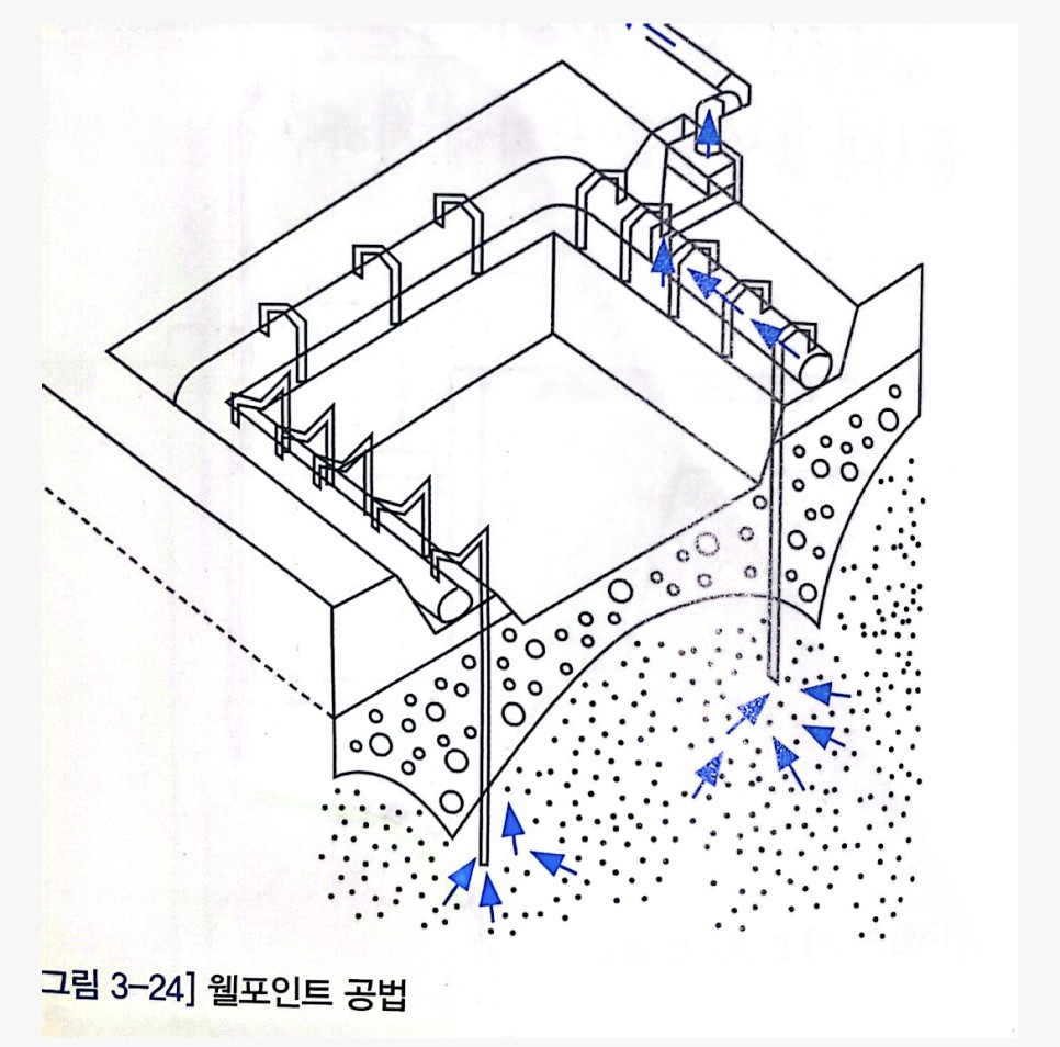 • 배수공법(웰포인트)등을 이용하여 지하수위를 저하시킨다.