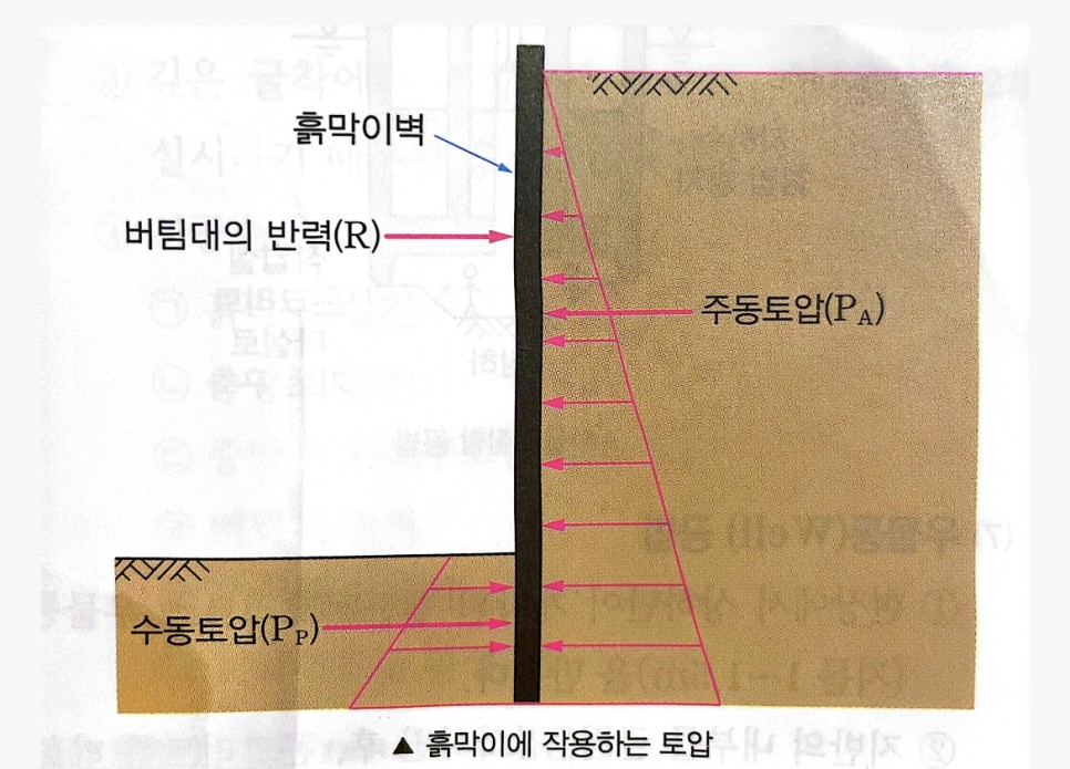 • 주동토압 : 흙막이 전면에 작용하는 토압